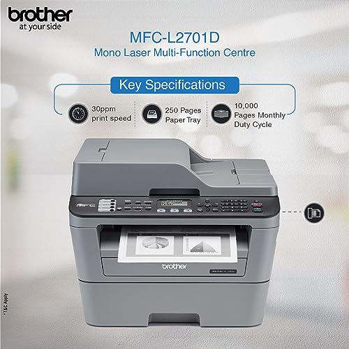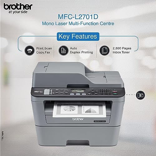 With a print resolution up to 2400 x 600 dpi, the MFC-L2701D produces professional output with crisp text and excellent graphics